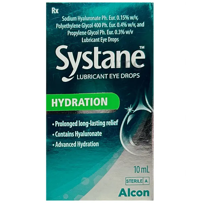 Systane Hydration Lubricant Eye Drop is a premium sterile ophthalmic lubricating solution specifically formulated to provide intensive hydration and long lasting relief from dry eye symptoms. It contains Polyethylene Glycol 400 (0.4%) and Propylene Glycol (0.3%) as its dual active lubricating ingredients combined with the innovative SYSTANE proprietary gelling technology that uses Hydroxypropyl Guar (HP-Guar) as a key formulation component. HP-Guar is a smart gelling agent that remains liquid in the bottle but forms a soft protective gel layer when it contacts the slightly alkaline tear film on the eye surface. This intelligent on-contact gelling technology creates a uniquely adaptive moisture layer that provides both immediate comfort on instillation and extended protection through the formation of a stable gel matrix on the eye surface. Systane Hydration is manufactured by Alcon, one of the world’s most respected and trusted names in ophthalmic care with decades of excellence in eye health innovation and product development. It is available as a sterile clear solution and is widely recommended by eye specialists and optometrists globally and across India for patients with dry eye disease of varying severity. Systane Hydration is part of the well established Systane family of lubricating eye drops that is one of the most extensively studied and clinically validated ranges of dry eye products available in the world today.